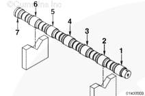 解體期間,不得損壞凸輪軸或襯套。拉出凸輪軸時(shí),來(lái)回輕輕轉動(dòng)凸輪軸。
