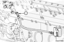 從位于發(fā)動(dòng)機左排的回油歧管塊上拆下噴油器回油軟管。僅拆下回油歧管缸體端 (1) 的軟管。參考第 6 節中的步驟 006-013。