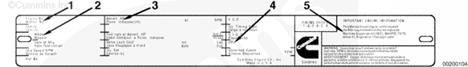 發(fā)動(dòng)機銘牌顯示你的發(fā)動(dòng)機的重要信息。發(fā)動(dòng)機生產(chǎn)序號和控制零件目錄 (CPL) 提供訂購零件和維修的數據。未經(jīng)康明斯公司批準不得擅自變更發(fā)動(dòng)機銘牌。
