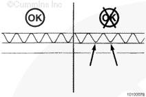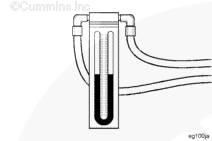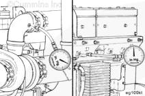 要測試空-空中冷器有無(wú)過(guò)度的堵塞情況,則需將壓力計的一端安裝到進(jìn)氣歧管中,將另一端安裝到渦輪增壓器壓縮機出口中。以最大功率 (rpm) 和負載運轉發(fā)動(dòng)機。觀(guān)察壓力計(零件號 3824718)或等同物,如果壓差高于 13.5 kPa [2 psi],則檢查空-空中冷器和管路有無(wú)內部堵塞。如有必要,維修或更換。請參考本服務(wù)公告中的“空-空中冷器系統的清潔和檢查”。