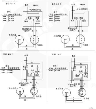 必須與所有加熱器總成一起使用。適用的壓力開(kāi)關(guān)和繼電器總成應具有 460 伏或三相供電系統。