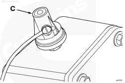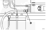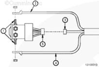 拆下直接位于起動(dòng)馬達上方主油道的接頭螺塞。在主油道接頭中安裝壓力開(kāi)關(guān)。連接導線(xiàn)線(xiàn)束中粉紅色導線(xiàn) (1) 到壓力開(kāi)關(guān) (2)。