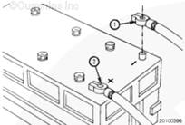 警告 蓄電池可能會(huì )有易爆性氣體逸出。為了盡可能避免人身傷害,在維護蓄電池前,必須保持發(fā)動(dòng)機艙通風(fēng)良好。為避免產(chǎn)生電弧,應最先拆下并最后連接蓄電池負極 (-) 電纜。 |