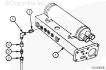 康明斯QSK19 壓力軟管和單向閥安裝,找到并拆下機油泵法蘭底部的螺塞。用一個(gè) 5/8-12 直螺紋 O 形圈 x 1/2 美國國家標準錐形管螺紋 (NPT) 適配器更換。