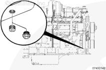 將康明斯壓力開(kāi)關(guān) 安裝在機油濾清器后面,左排上的主油道中,如圖所示。