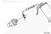 將新康明斯傳感器裝入發(fā)動(dòng)機缸體中。使用加長(cháng)套筒(零件號 3823843)擰緊傳感器。扭矩值:  14  n.m  [124 in-lb]