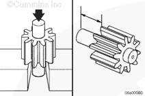 使用手扳壓機支撐油泵軸。 將驅動(dòng)齒輪放在軸上,使用心軸將齒輪壓在軸上,使驅動(dòng)齒輪與軸平齊。