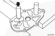 注: 將兩個(gè)機油泵從動(dòng)齒輪軸壓入蓋中。