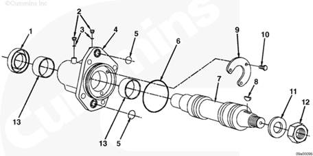 1油封 (1),2直螺紋 O 形圈螺塞 (2),3 O 形密封圈 (2),4驅動(dòng)殼體,5 O 形密封圈 (2),6 O 形密封圈,7軸,8半圓鍵,9止推板,10螺栓 (3),11墊圈,12螺母,13襯套 (2)。