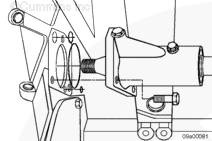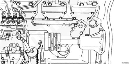 法蘭安裝型驅動(dòng) - 安裝 O 形圈。將法蘭安裝型驅動(dòng)殼體總成安裝到齒輪室的后部。安裝四顆螺栓。扭矩值:  108  n.m  [80 ft-lb]