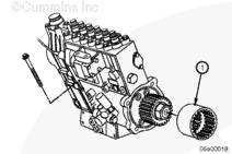 驅動(dòng)開(kāi)放型 - 底座安裝型 - 在拆卸燃油泵驅動(dòng)或燃油泵之前旋轉曲軸至指定的發(fā)動(dòng)機正時(shí)。拆卸燃油泵。參考步驟 005-012。拆下前齒輪室蓋參考步驟 001-031 。