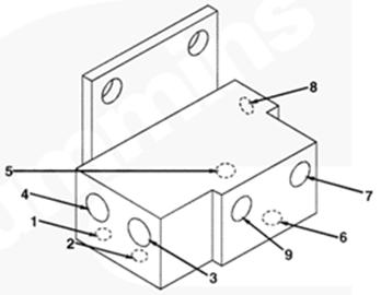 1右排歧管(零件號 3094906),2流至 EHAB 進(jìn)口的燃油(抽吸未經(jīng)過(guò)濾的燃油),3自右排噴油器回油管和噴油泵溢流管/EHAB(兩條管路)的回油,4自左排燃油歧管(右排供油)的燃油(抽吸未經(jīng)過(guò)濾的燃油),5流至左排燃油歧管(自右排回油)的燃油,6自濾清器和左排燃油歧管的燃油(經(jīng)過(guò)濾的增壓燃油),7流至左排燃油歧管(未經(jīng)過(guò)濾的增壓燃油)和濾清器的燃油,8自輸油泵的燃油(未經(jīng)過(guò)濾的增壓燃油),9流至噴油泵進(jìn)口/EHAB 的燃油(經(jīng)過(guò)濾的增壓燃油)。