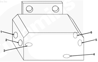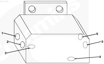 1右排歧管(零件號 3092087),2流至 EHAB 進(jìn)口的燃油(抽吸未經(jīng)過(guò)濾的燃油),3自左排燃油連接塊的燃油(供油)(抽吸未經(jīng)過(guò)濾的燃油),4至左排燃油連接塊的回油,5自右排 EHAB/溢流管和右排噴油器回油管的燃油(回油)。