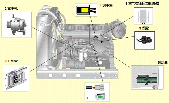 • EMS2(發(fā)動(dòng)機管理系統)是一個(gè)具有CAN(控制器區域網(wǎng)絡(luò ))通信功能的電子系統,用以實(shí)現對柴油機的控制。