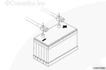 蓄電池可能有易爆性氣體逸出。為避免人身傷害,在維護蓄電池前,必須保持康明斯ISB3.9發(fā)動(dòng)機艙通風(fēng)良好。為了避免產(chǎn)生電弧,應首先拆下負極 (-) 蓄電池電纜,并最后連接負極 (-) 蓄電池電纜。
