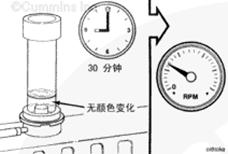 如果在 30 分鐘的測試期間,測試液沒(méi)有從藍色變?yōu)辄S色,讓康明斯ISB3.9發(fā)動(dòng)機回到低怠速。