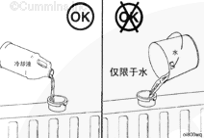 不要從熱康明斯ISB3.9發(fā)動(dòng)機上打開(kāi)散熱器壓力蓋。應等待冷卻液溫度降至 50°C [122°F] 以下時(shí)才能打開(kāi)壓力蓋。否則高溫冷卻液或蒸汽噴出可能會(huì )造成人身傷害。