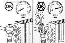 保持壓縮空氣噴嘴距散熱器芯至少 15cm [6 in],以免損壞散熱片。參見(jiàn)插圖中的編號 1