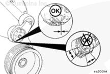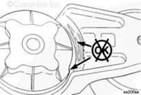 測量張緊器彈簧殼與張緊器臂之間的間隙,以核實(shí)張緊器已磨損以及不均勻的軸承磨損。如果在任何點(diǎn)上的間隙超過(guò) 3 mm [0.12 in],則張緊器失效而且必須作為整個(gè)總成進(jìn)行更換。
