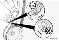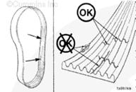 檢查皮帶張緊器皮帶輪上傳動(dòng)皮帶的位置。皮帶應位于皮帶輪的中間,或靠近中間。未對準的皮帶、無(wú)論太靠前或太靠后,都可能造成皮帶磨損、皮帶滾動(dòng)故障或增加不均勻的張緊器襯套磨損。