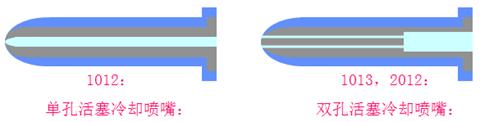向活塞體內部噴射潤滑油實(shí)現活塞冷卻。塑料制成的活塞冷卻噴嘴裝在主軸承座內。安裝時(shí)不需要對準。