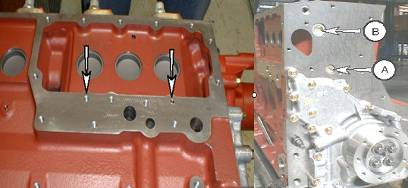 1、檢查缸體上水泵下面的螺栓A(M22*1.5mm在主油道上)可導致機油進(jìn)入冷卻系統。