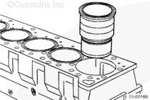 安裝可繼續使用的缸套時(shí),將缸套從最初在發(fā)動(dòng)機的位置上旋轉 90 度。止推和防止推表面必須朝向缸體的前部和后部。