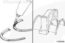如圖所示,在每個(gè)康明斯ISX15 CM2250發(fā)動(dòng)機主軸承蓋上的 2 個(gè)主軸承蓋表面涂上一層 U 形 Loctite™ 518 螺紋密封膠。