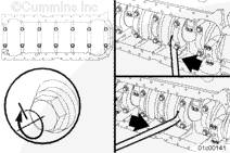 將康明斯ISX15 CM2250發(fā)動(dòng)機主軸承蓋上的兩個(gè)螺釘擰緊到 203 N•m [150 ft-lb]。