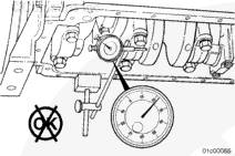 若要測量康明斯ISX15 CM2250發(fā)動(dòng)機曲軸的軸向間隙,應在油底殼安裝法蘭上安裝千分表。