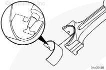 注: 連桿必須能夠在曲軸軸頸上橫向移動(dòng)自如。如果連桿不能移動(dòng)自如,拆下連桿蓋,然后確保軸瓦的尺寸正確。檢查曲軸和軸瓦上有無(wú)污垢或損壞。