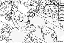 注: 安裝噴油器導線(xiàn),使它們不與搖臂或發(fā)動(dòng)機制動(dòng)殼體產(chǎn)生干涉。如果搖臂能夠接觸到噴油器線(xiàn)束,會(huì )摩擦導線(xiàn)絕緣層,并導致噴油器電路故障代碼。
