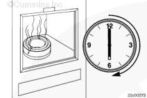 嘗試在相距約 90 度的 4 個(gè)位置上,在康明斯ISX15 CM2250發(fā)動(dòng)機曲軸適配器和轉速信號輪之間插入 0.25 mm [0.010 in] 的塞尺來(lái)檢查安裝。如果能夠插入塞尺,必須拆下并更換曲軸適配器。