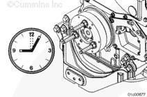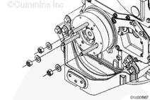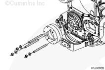 在將康明斯ISX15 CM2250發(fā)動(dòng)機蓋固定到位的同時(shí),用三個(gè) M8 螺釘,一個(gè)六角螺母和兩個(gè) M12 螺釘安裝下齒輪室蓋并手動(dòng)擰緊。