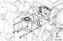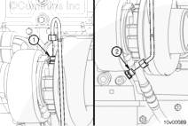 將渦輪增壓器供油管安裝到渦輪增壓器軸承殼體陽(yáng)性接頭 (1) 上。供油軟管必須直接朝下,以便正確連接到機油濾清器座 (2) 上的供油管接頭上。