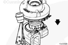 將康明斯ISX15 CM2250發(fā)動(dòng)機軸承和壓縮機殼體總成小心滑入渦輪殼中。根據墨水校準標記,按照與渦輪殼正確的方向定位渦輪殼總成。