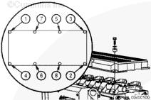 當蓋密封墊在所有螺栓孔四周就位后,將蓋密封墊按入搖臂室蓋的凹槽內,從螺栓孔開(kāi)始然后移到每個(gè)跨距的中間。