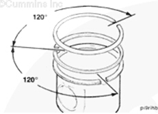 放置各個(gè)活塞環(huán),使每個(gè)活塞環(huán)開(kāi)口相互成 120 度。
