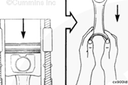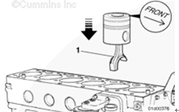 將康明斯B3.9、B4.5、B4.5 RGT 和 B5.9 發(fā)動(dòng)機連桿插入缸孔內,直到活塞環(huán)壓縮器接觸到缸體頂部。