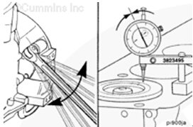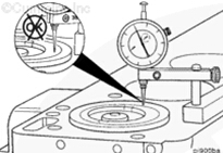 旋轉曲軸至上止點(diǎn)。順時(shí)針和逆時(shí)針旋轉曲軸,查找千分表最大讀數。記錄測量結果。