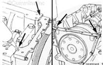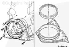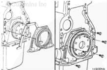 對于前齒輪系康明斯發(fā)動(dòng)機,曲軸后油封托架安裝在缸體后部,以蓋住曲軸后油封。對于后齒輪系發(fā)動(dòng)機,曲軸后油封安裝在飛輪殼中