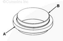 新的康明斯B3.9、B4.5、B4.5 RGT 和 B5.9 發(fā)動(dòng)機曲軸后油封 (A) 將安裝在油封導向工具 (B) 上。在將油封安裝在曲軸前端上時(shí),此油封必須留在油封導向工具上。這可確保在安裝期間不會(huì )損壞油封唇部。