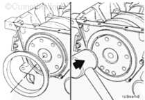 注: 對于帶濕式飛輪殼的發(fā)動(dòng)機,確保用正確的后密封更換曲軸后油封。用于濕式和干式飛輪殼的曲軸后油封可能不同。