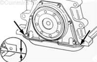 安裝康明斯B3.9、B4.5、B4.5 RGT 和 B5.9 發(fā)動(dòng)機曲軸后油封托架和密封墊。將 Loctite™ 262 或 271 涂抹到安裝螺栓上,然后將后油封托架略微擰緊到缸體上。
