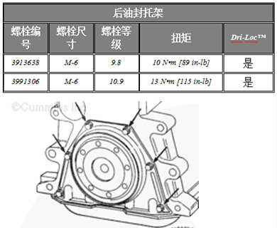 而且,在安裝康明斯B3.9、B4.5、B4.5 RGT 和 B5.9 發(fā)動(dòng)機曲軸后油封托架之前可以在此聯(lián)接點(diǎn)上涂一薄層密封膠(零件號 3164067)。必須在涂上密封膠后的 10 分鐘內安裝后油封托架。