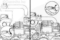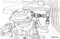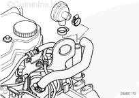 在康明斯B3.9、B4.5、B4.5 RGT 和 B5.9 發(fā)動(dòng)機閉式曲軸箱通風(fēng)軟管上連接閉式曲軸箱通風(fēng)閥,然后固定軟管卡箍。