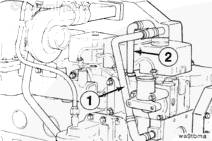 安裝冷卻液供應管 (1) 和冷卻液回流管 (2)。