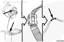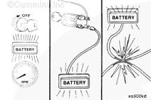 蓄電池可能會(huì )有易爆性氣體逸出。為了盡可能避免人身傷害,在維護蓄電池前,必須保持康明斯B3.3和QSB3.3發(fā)動(dòng)機艙通風(fēng)良好。為避免產(chǎn)生電弧,應首先拆下負極 (-) 蓄電池電纜,并最后連接負極 (-) 蓄電池電纜。