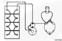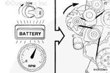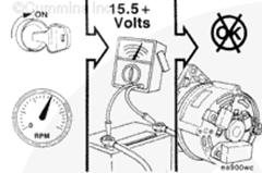 注: 充電機輸出電壓直接與正在運轉的充電機轉速有關(guān)。充電機傳動(dòng)皮帶滑動(dòng)可能會(huì )造成輸出讀數不正確。