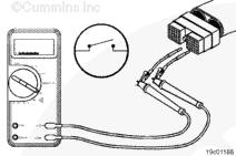 從康明斯離合器踏板位置開(kāi)關(guān)接頭中拆下一個(gè)萬(wàn)用表表筆,并使該表筆與底盤(pán)接地接觸。離合器踏板釋放時(shí),萬(wàn)用表必須顯示開(kāi)路特征(100 千歐或更大)。如果電路閉合,更換離合器踏板位置開(kāi)關(guān)。